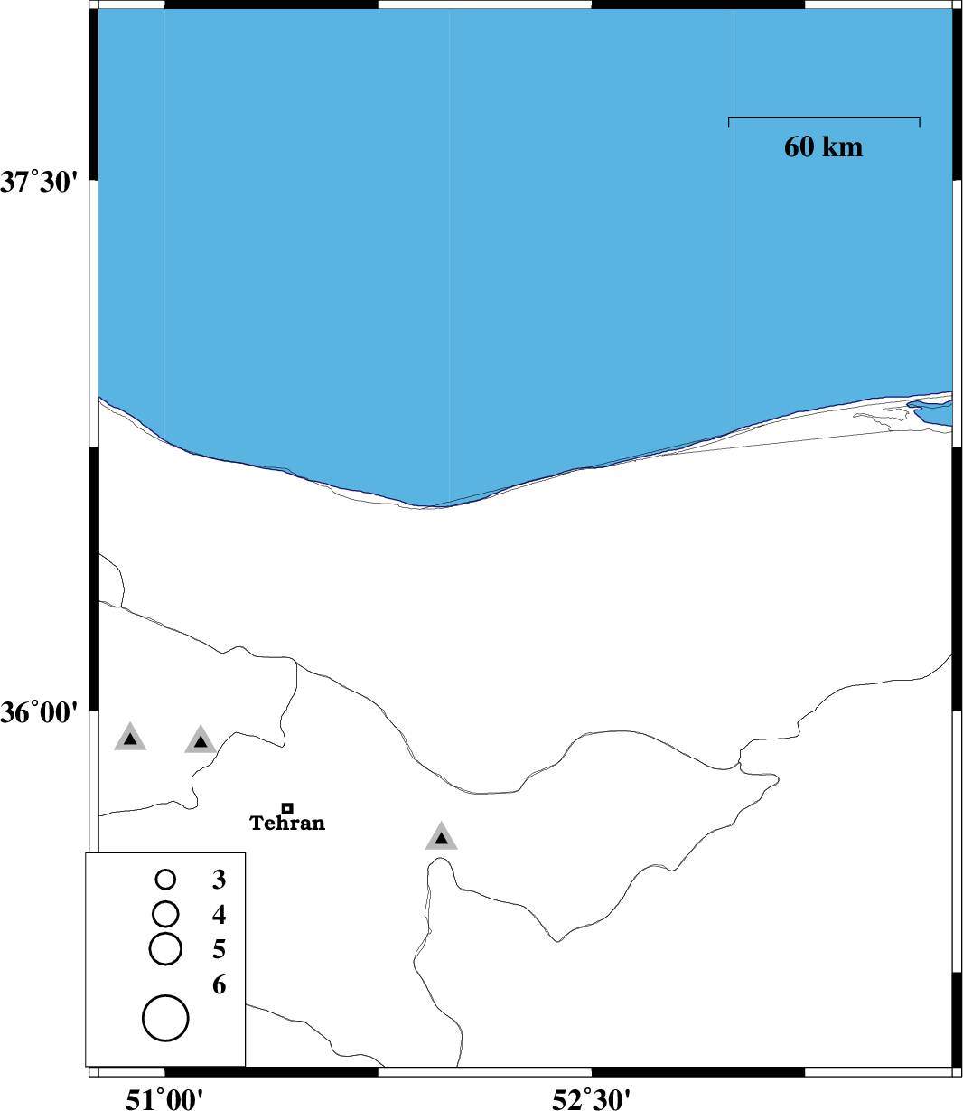 | 2016/05/10 | 16:53:13.9 | 21:23:13.9 | 36.476 | 52.267 | 15 | ML3.1 | Mazandaran Province, 8 km of Amol |