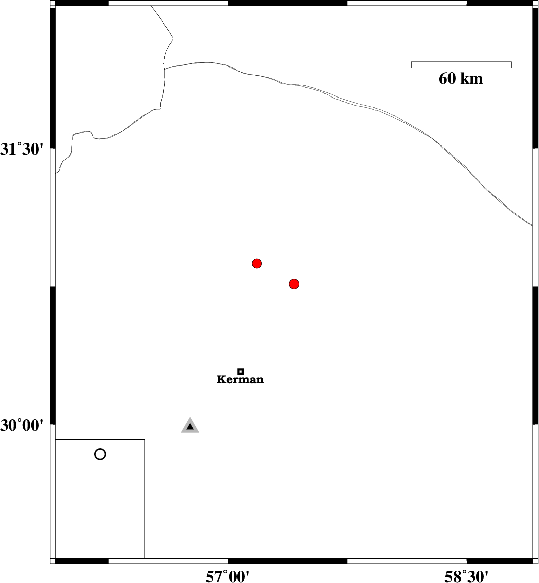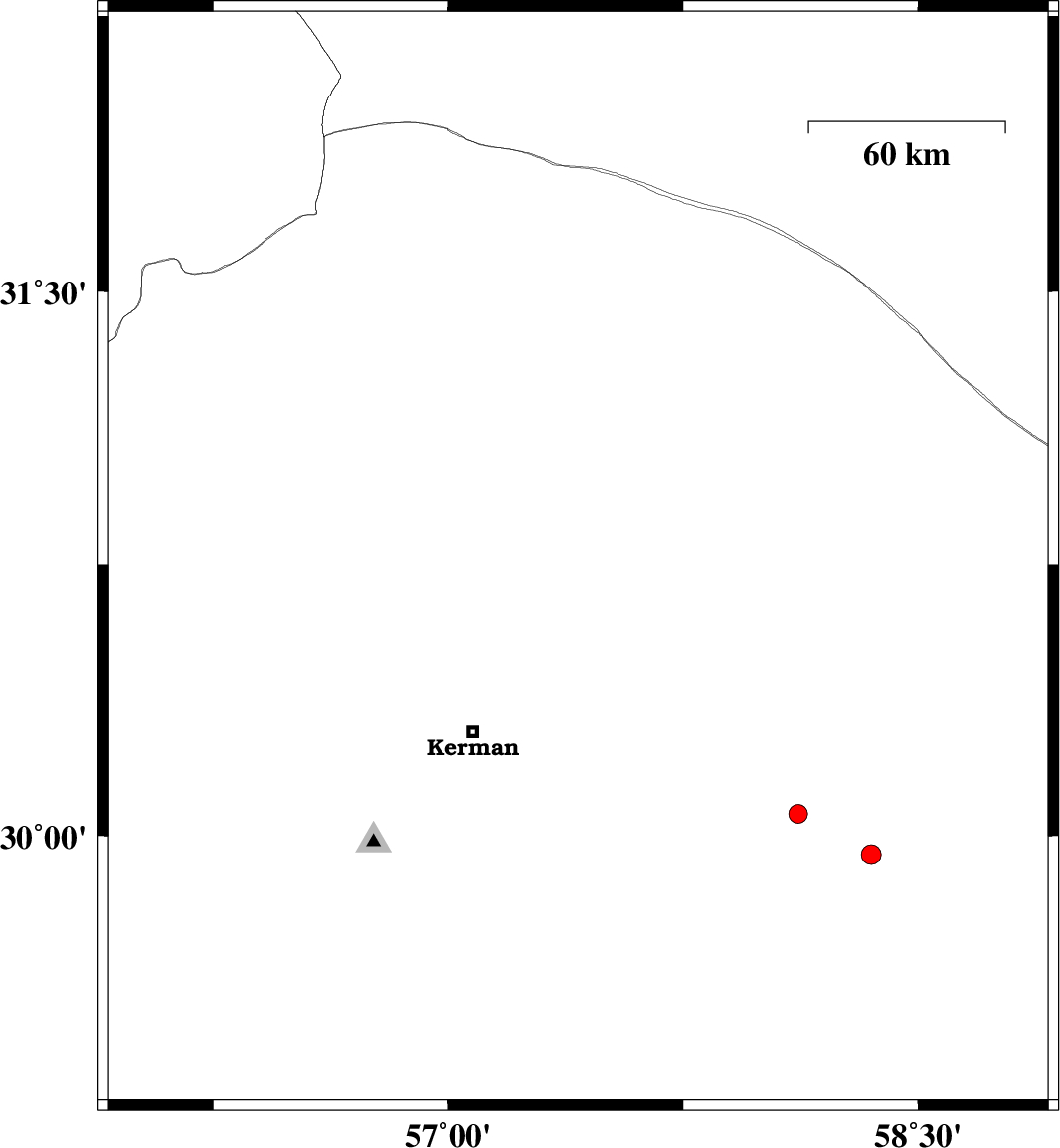 | 2016/05/13 | 10:54:55.6 | 15:24:55.6 | 30.763 | 57.415 | 14 | ML2.8 | Kerman Province, 62 km North-East of Kerman | ||