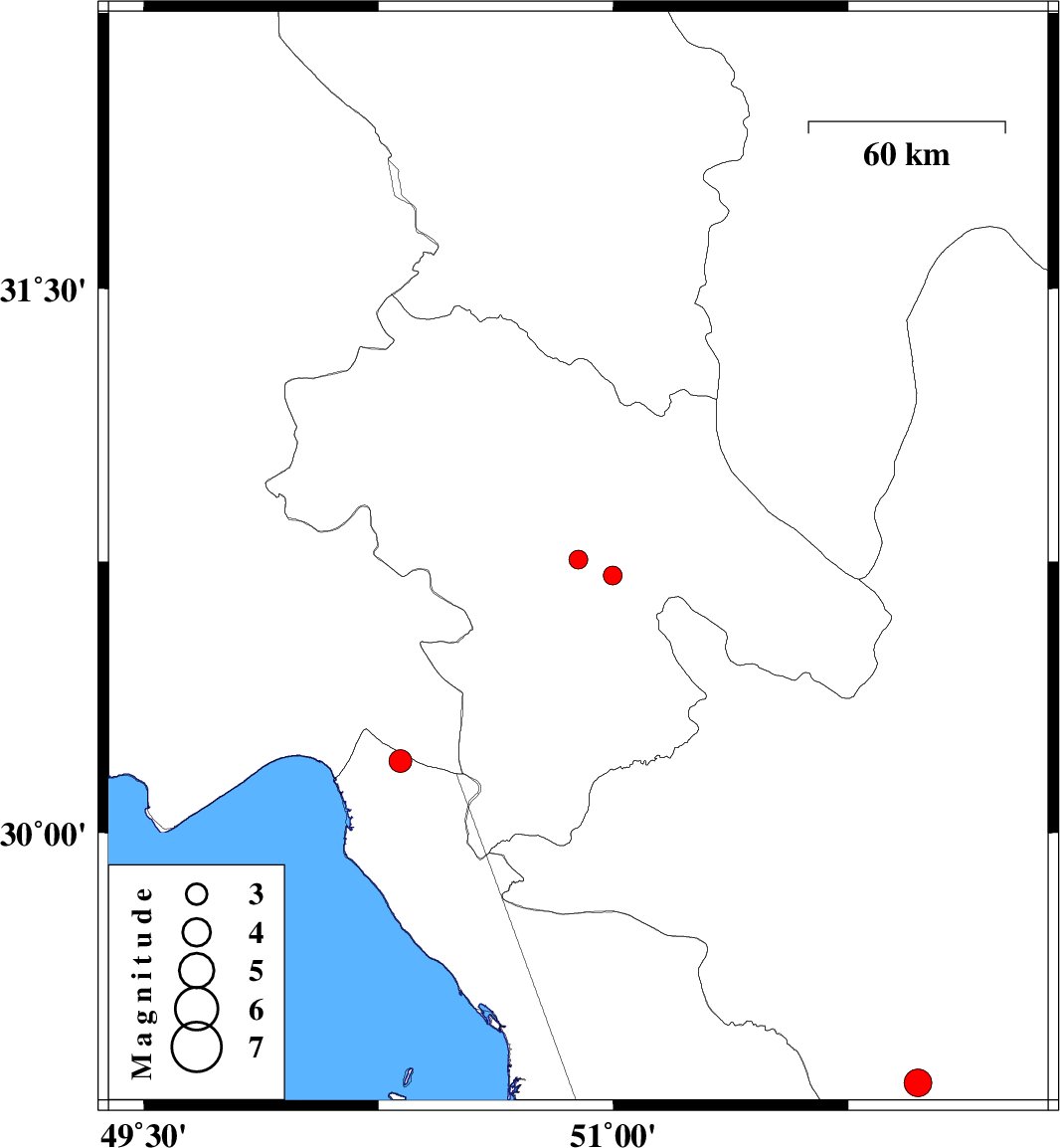 | 2016/05/11 | 05:24:36.3 | 09:54:36.3 | 30.198 | 50.32 | 15 | ML3.2 | Khoozestan Province, 45 km South of Behbahan | ||