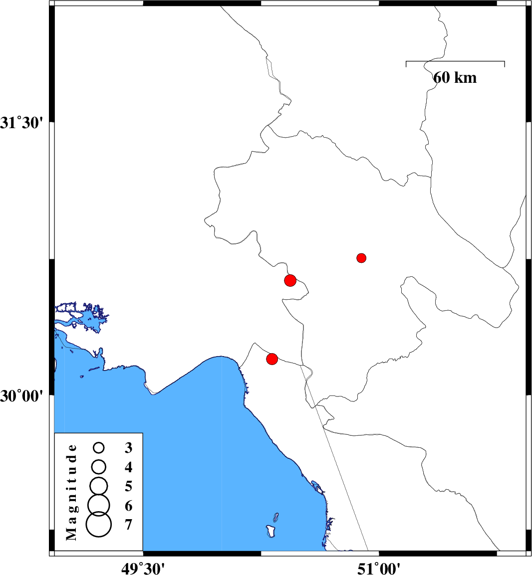 | 2016/05/11 | 05:24:36.3 | 09:54:36.3 | 30.198 | 50.32 | 15 | ML3.2 | Khoozestan Province, 45 km South of Behbahan |