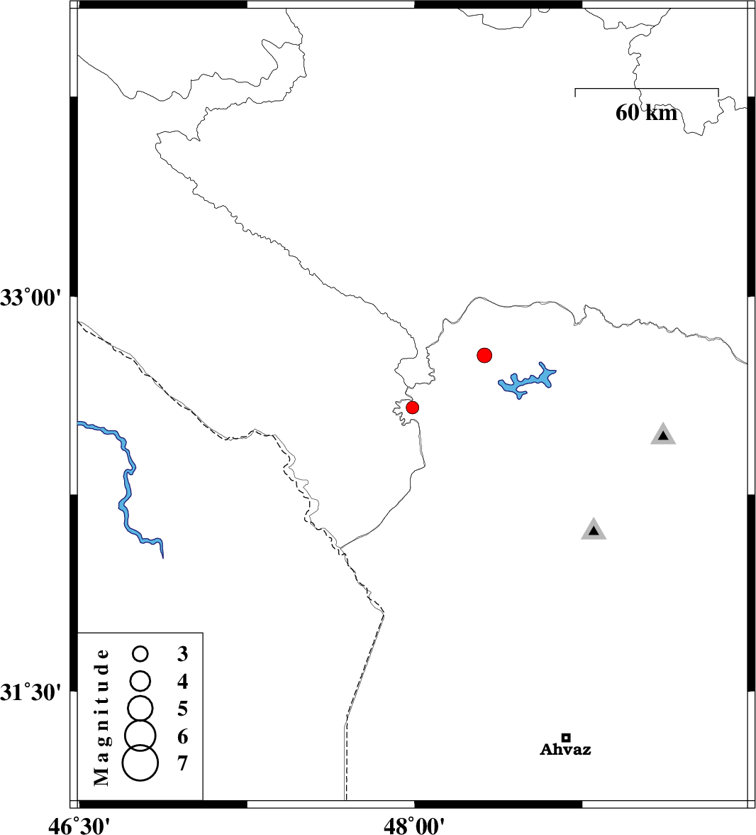 | 2016/05/21 | 19:12:52.0 | 23:42:52.0 | 32.777 | 48.313 | 15 | ML2.9 | Khoozestan Province, 35 km North of Andimeshk |