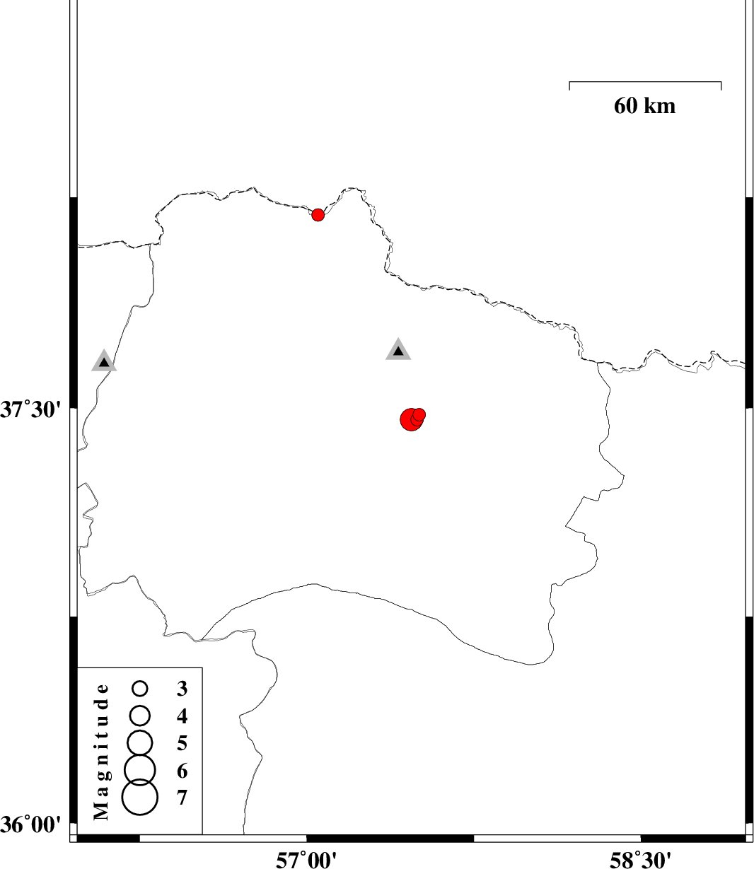 | 2016/05/24 | 18:27:40.3 | 22:57:40.3 | 37.458 | 57.495 | 14 | ML2.6 | Khorasan(north) Province, 14 km -East of Bojnurd | ||