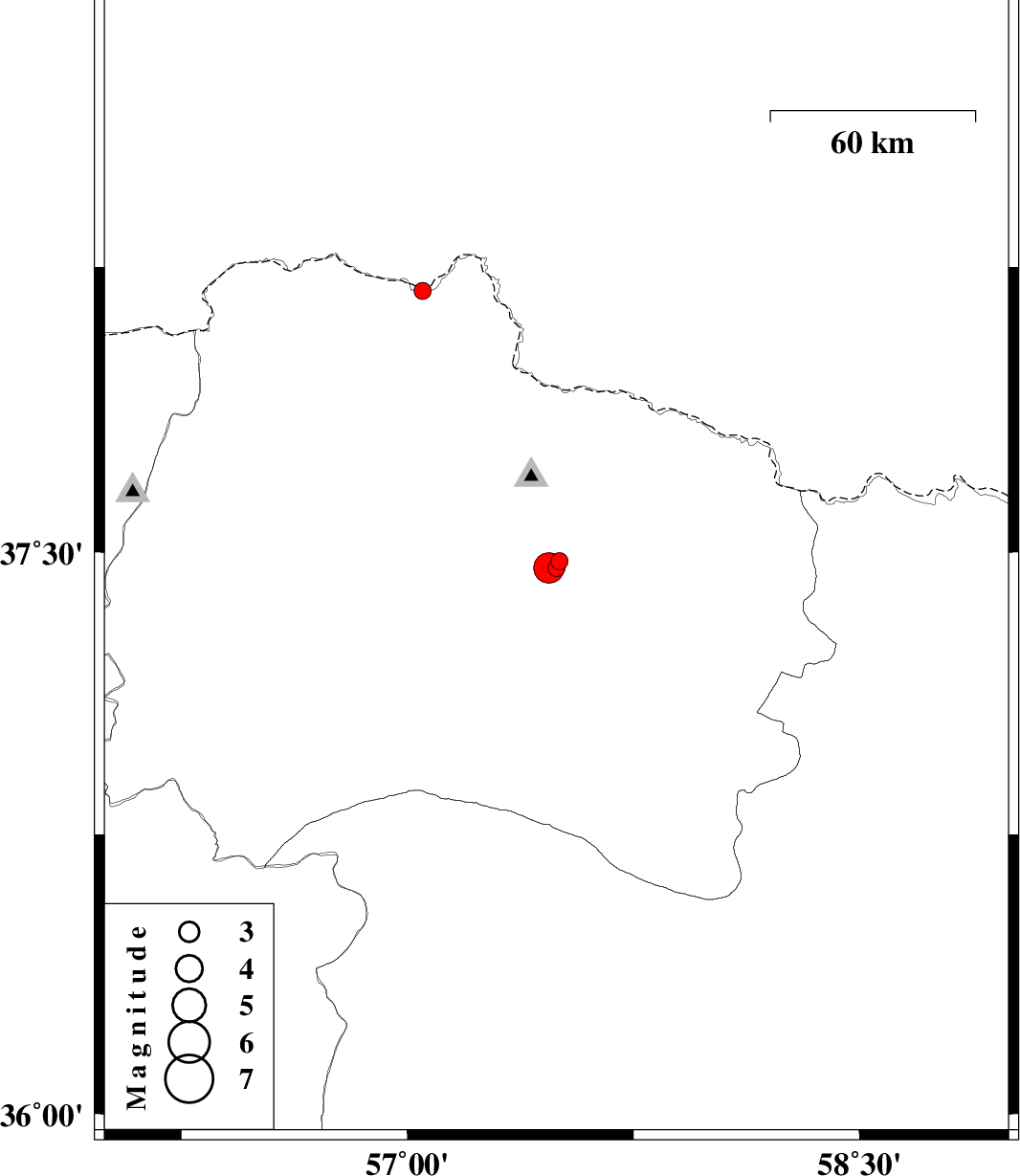 | 2016/05/24 | 17:52:00.9 | 22:22:00.9 | 37.458 | 57.469 | 15 | ML4.5 | Khorasan(north) Province, 12 km -East of Bojnurd | ||