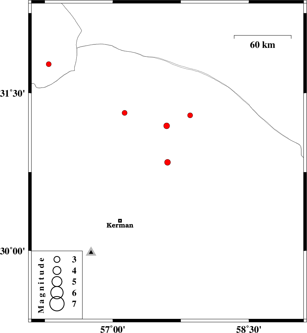 | 2016/05/25 | 03:28:53.4 | 07:58:53.4 | 30.843 | 57.603 | 14 | ML2.9 | Kerman Province, 99 km -East of Zarand | ||