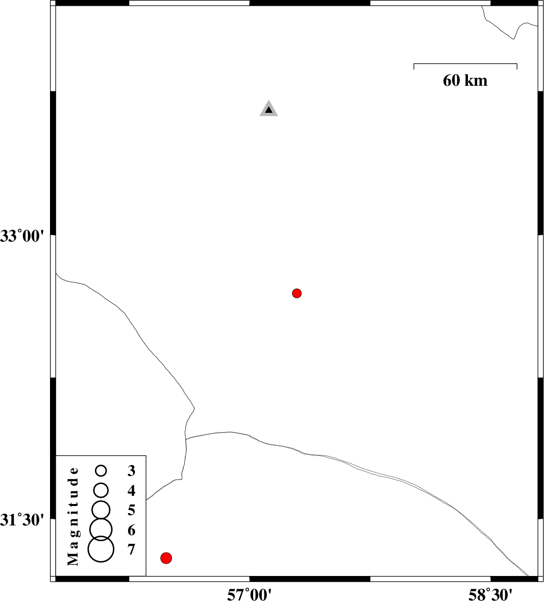 | 2016/06/18 | 09:42:17.2 | 14:12:17.2 | 32.694 | 57.293 | 16 | ML2.5 | Yazd Province, 106 km South-East of Tabas |