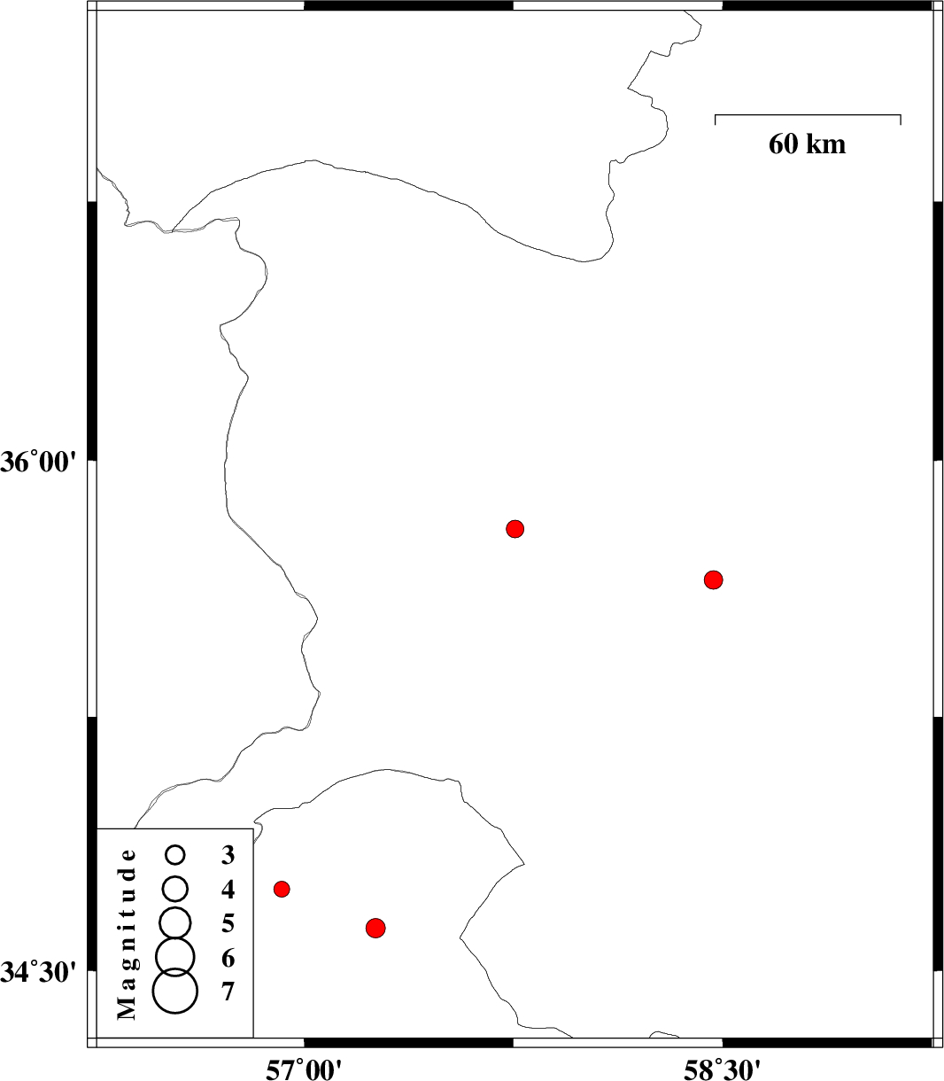 | 2016/06/19 | 06:22:24.1 | 10:52:24.1 | 35.651 | 58.468 | 14 | ML3 | Khorasan(center) Province, 46 km North of Kashmar | ||