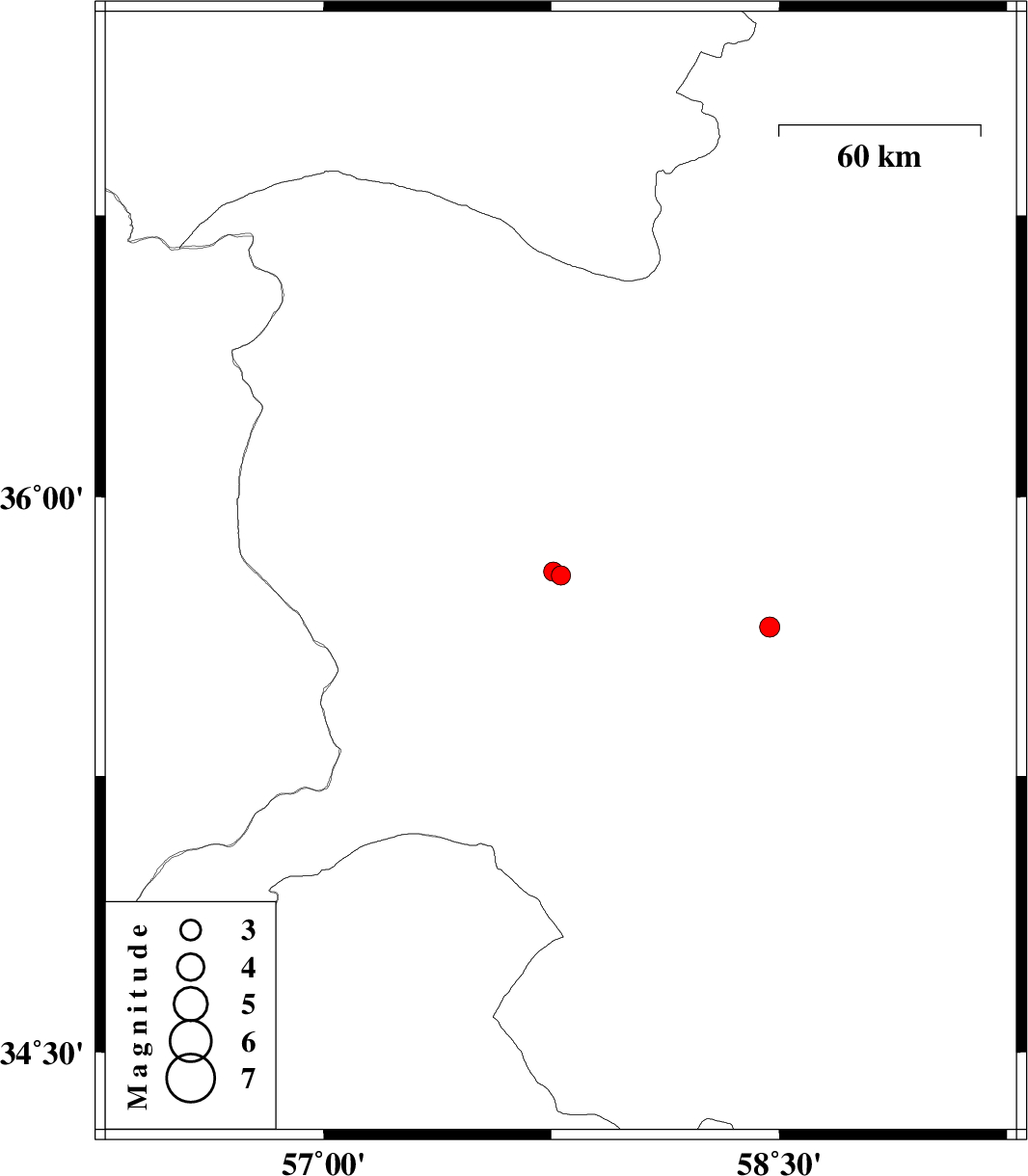 | 2016/06/19 | 06:22:24.1 | 10:52:24.1 | 35.651 | 58.468 | 14 | ML3 | Khorasan(center) Province, 46 km North of Kashmar |