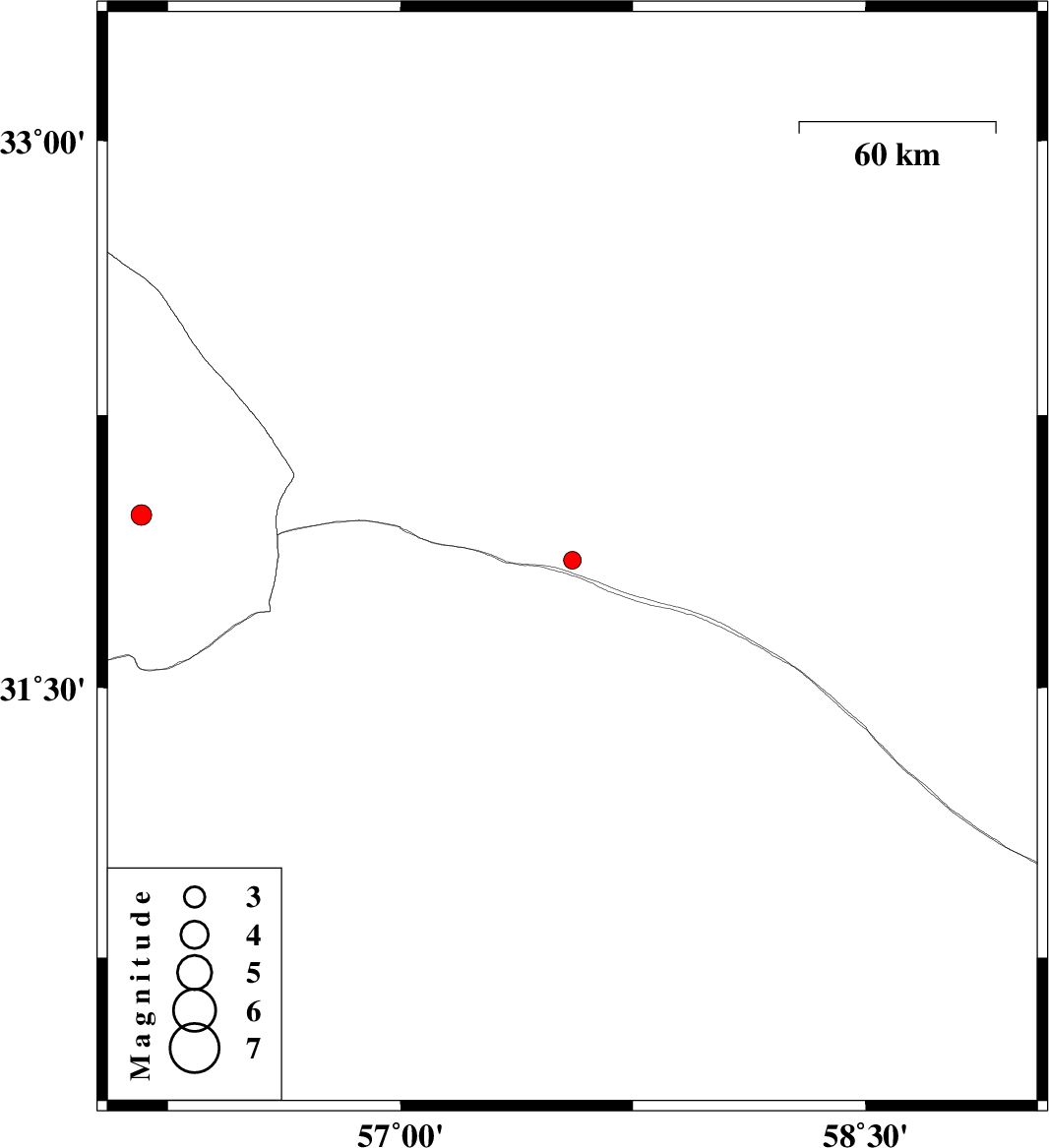| 2016/06/22 | 10:34:25.7 | 15:04:25.7 | 31.977 | 56.163 | 15 | ML3 | Yazd Province, 83 km North-East of Bafq |