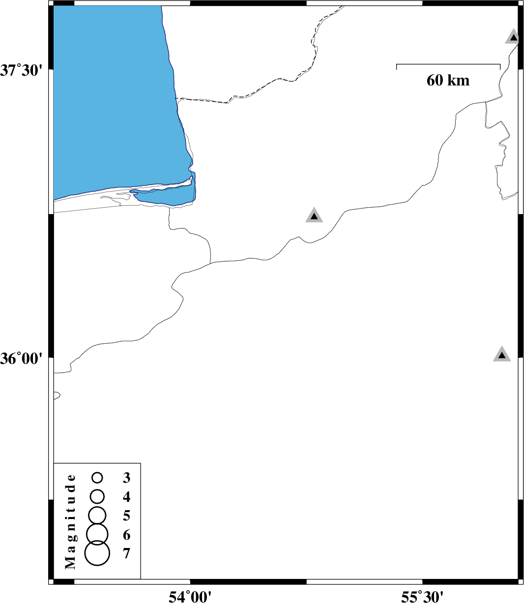 | 2016/07/01 | 01:07:54.5 | 05:37:54.5 | 36.327 | 54.617 | 15 | ML2.7 | Semnan Province, 30 km North-East of Damghan |