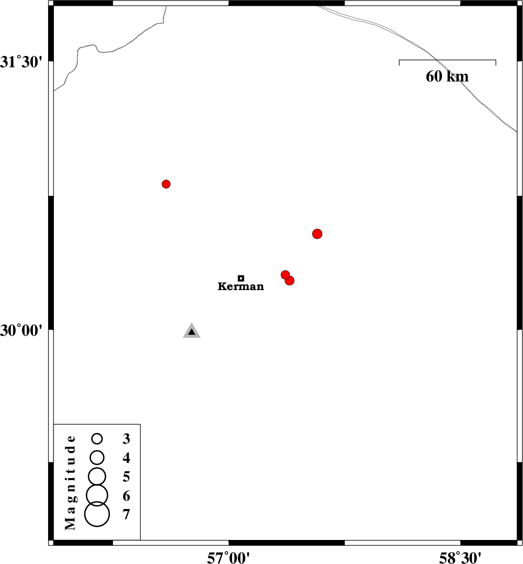 | 2016/06/30 | 02:11:57.8 | 06:41:57.8 | 30.537 | 57.573 | 14 | ML2.8 | Kerman Province, 55 km North-East of Kerman | ||