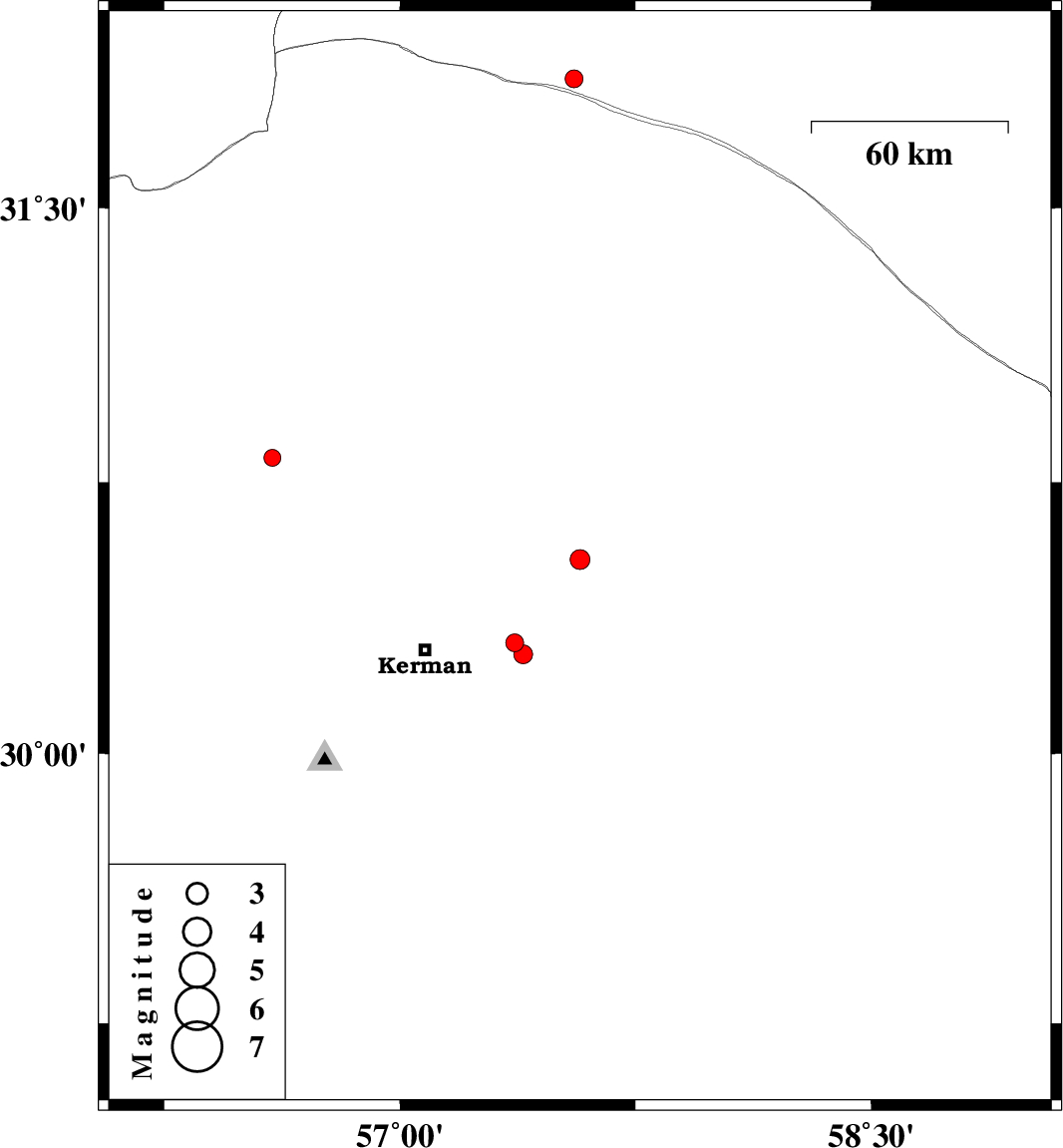 | 2016/06/30 | 02:11:57.8 | 06:41:57.8 | 30.537 | 57.573 | 14 | ML2.8 | Kerman Province, 55 km North-East of Kerman | ||