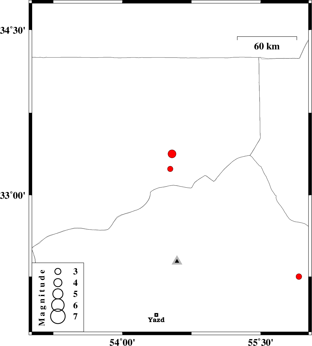 | 2016/07/03 | 06:06:45.9 | 10:36:45.9 | 32.251 | 55.914 | 14 | ML2.8 | Yazd Province, 87 km North-East of Bafq |