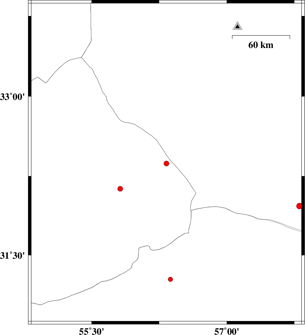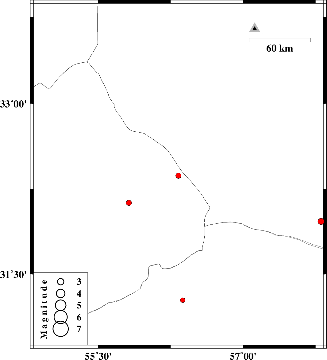 | 2016/07/11 | 10:44:44.1 | 15:14:44.1 | 31.269 | 56.375 | 14 | ML2.2 | Kerman Province, 42 km -West of Ravar |