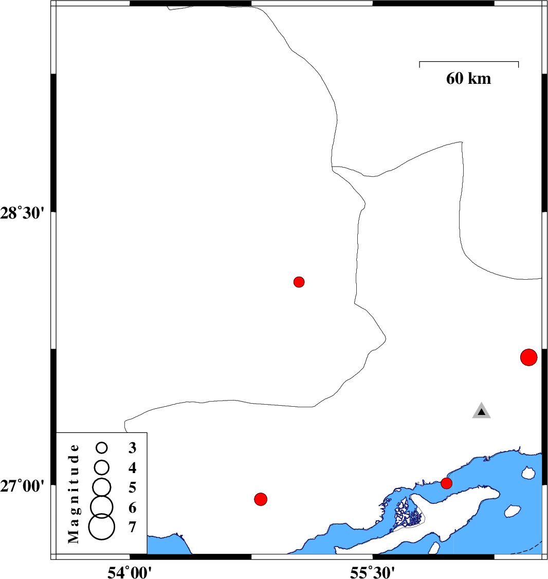 | 2016/07/12 | 22:43:05.3 | 03:13:05.3 | 26.921 | 54.808 | 15 | ML3.5 | Hormozgan Province, 44 km North of Bandar-e lengeh | ||