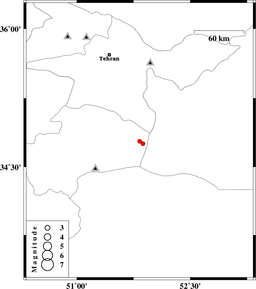 | 2016/07/14 | 06:53:39.8 | 11:23:39.8 | 34.755 | 51.874 | 14 | ML2.5 | Qom Province, 66 km South-East of Varamin |