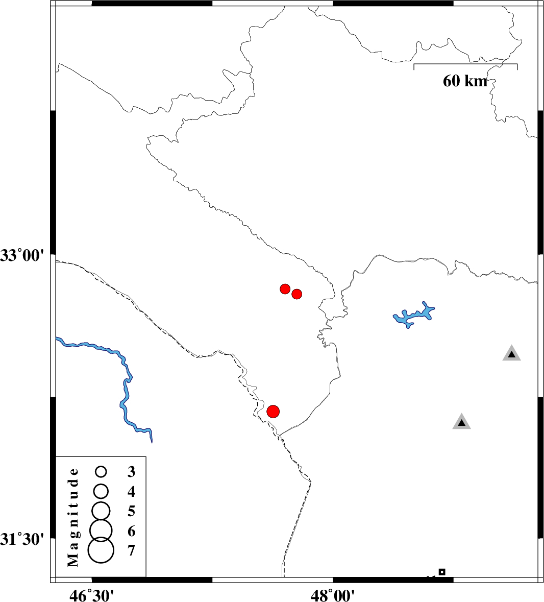 | 2016/07/18 | 17:09:58.2 | 21:39:58.2 | 32.172 | 47.627 | 15 | ML3.5 | Ilam Province, 59 km -West of Shush |