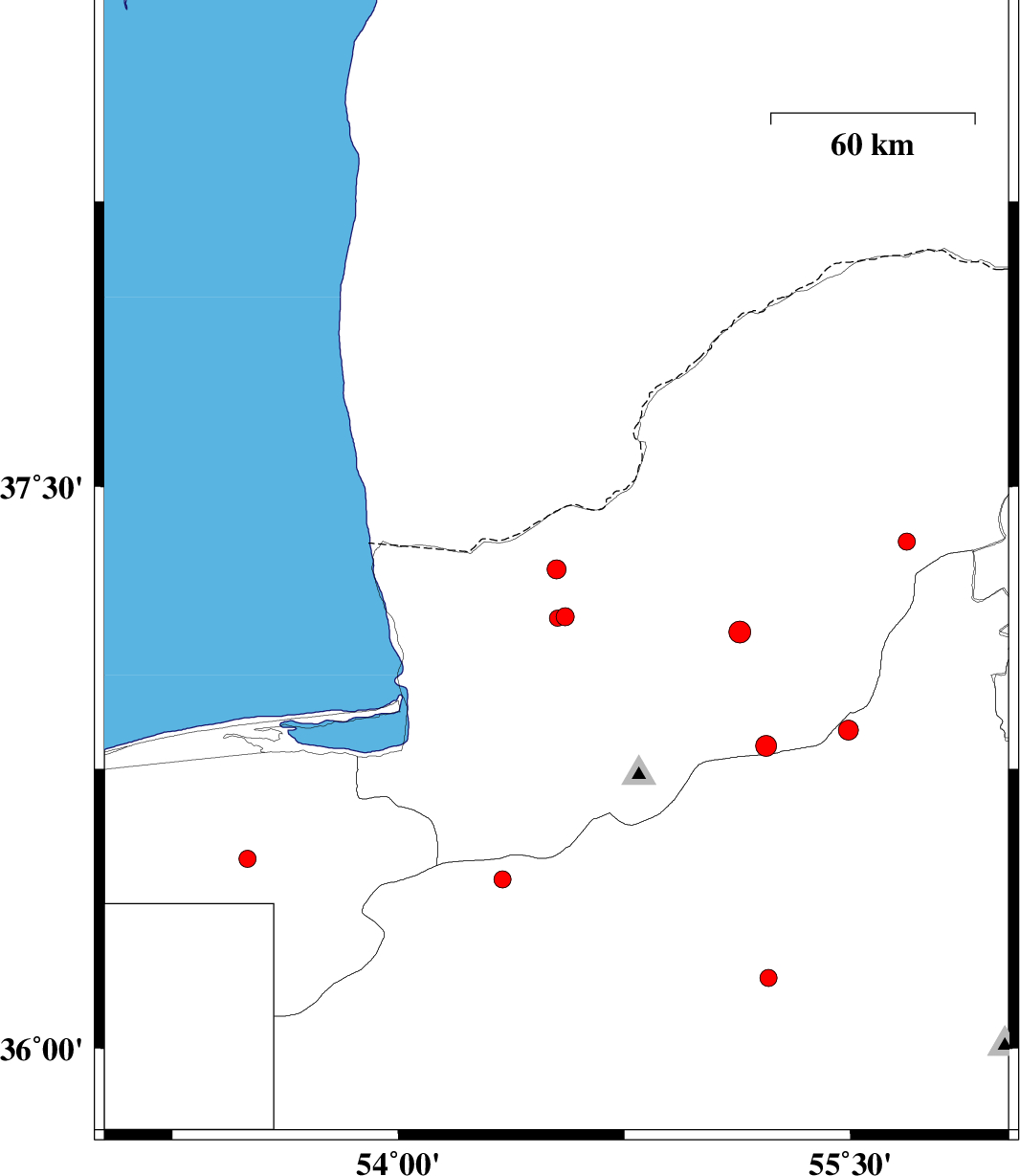 Golestan Province, 18 km North-East of Aq Qaleh | |
