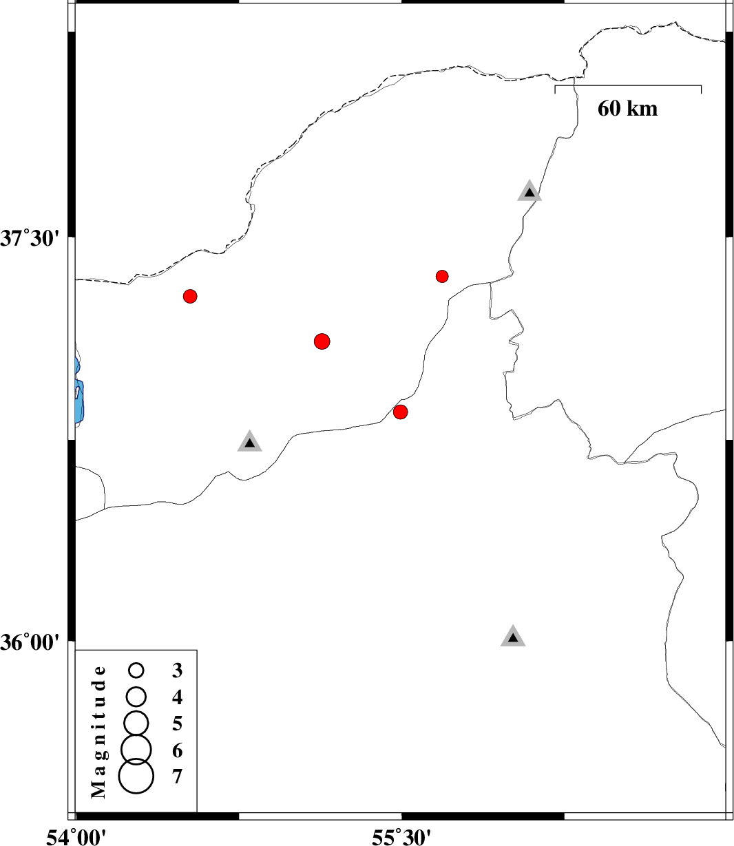 | 2016/08/07 | 12:44:37.8 | 17:14:37.8 | 37.281 | 54.525 | 14 | ML2.8 | Golestan Province, 31 km North of Aq Qaleh | ||