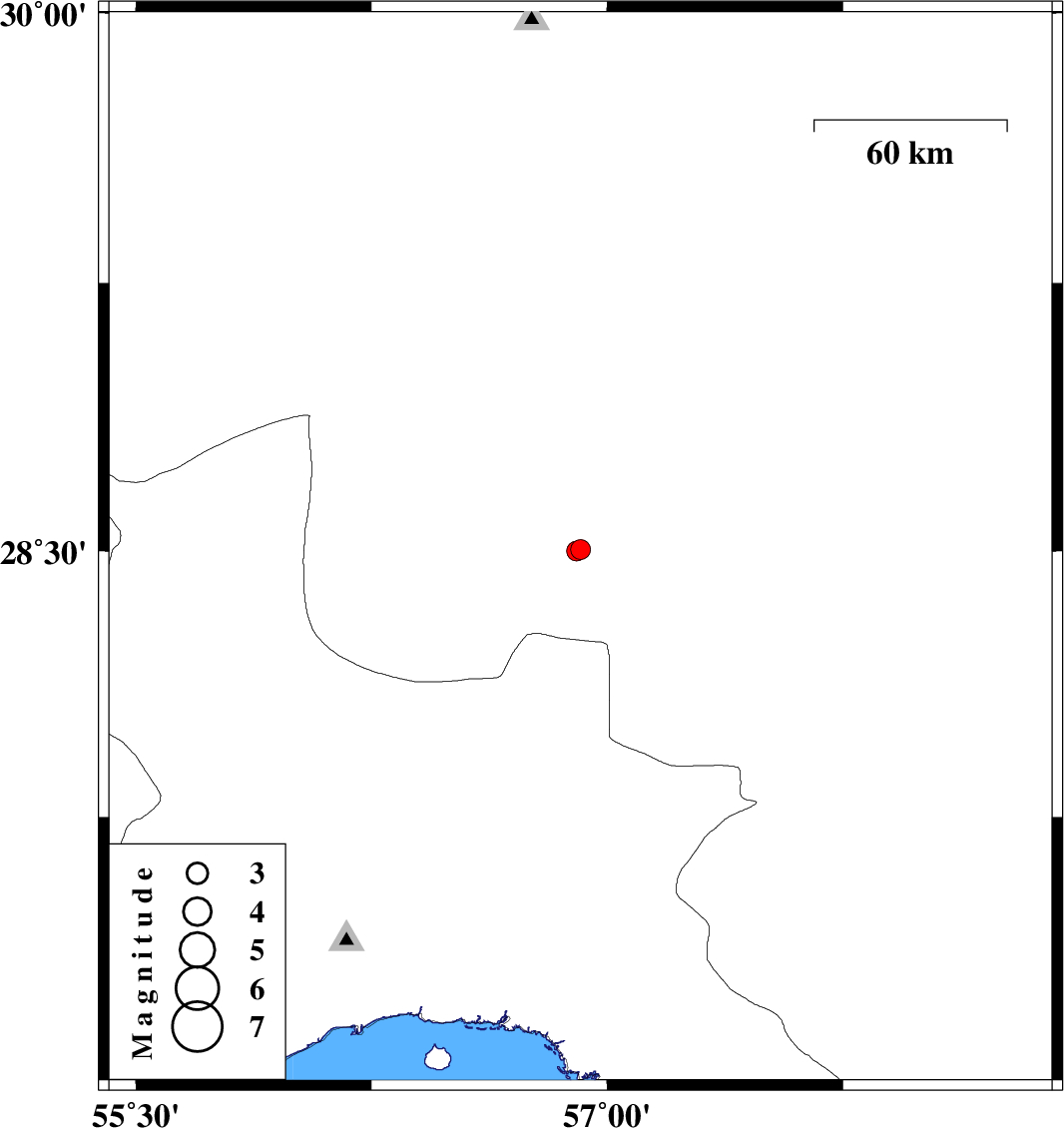 | 2016/08/09 | 05:46:21.1 | 10:16:21.1 | 28.499 | 56.902 | 14 | ML2.8 | Kerman Province, 84 km South-West of Jiroft |