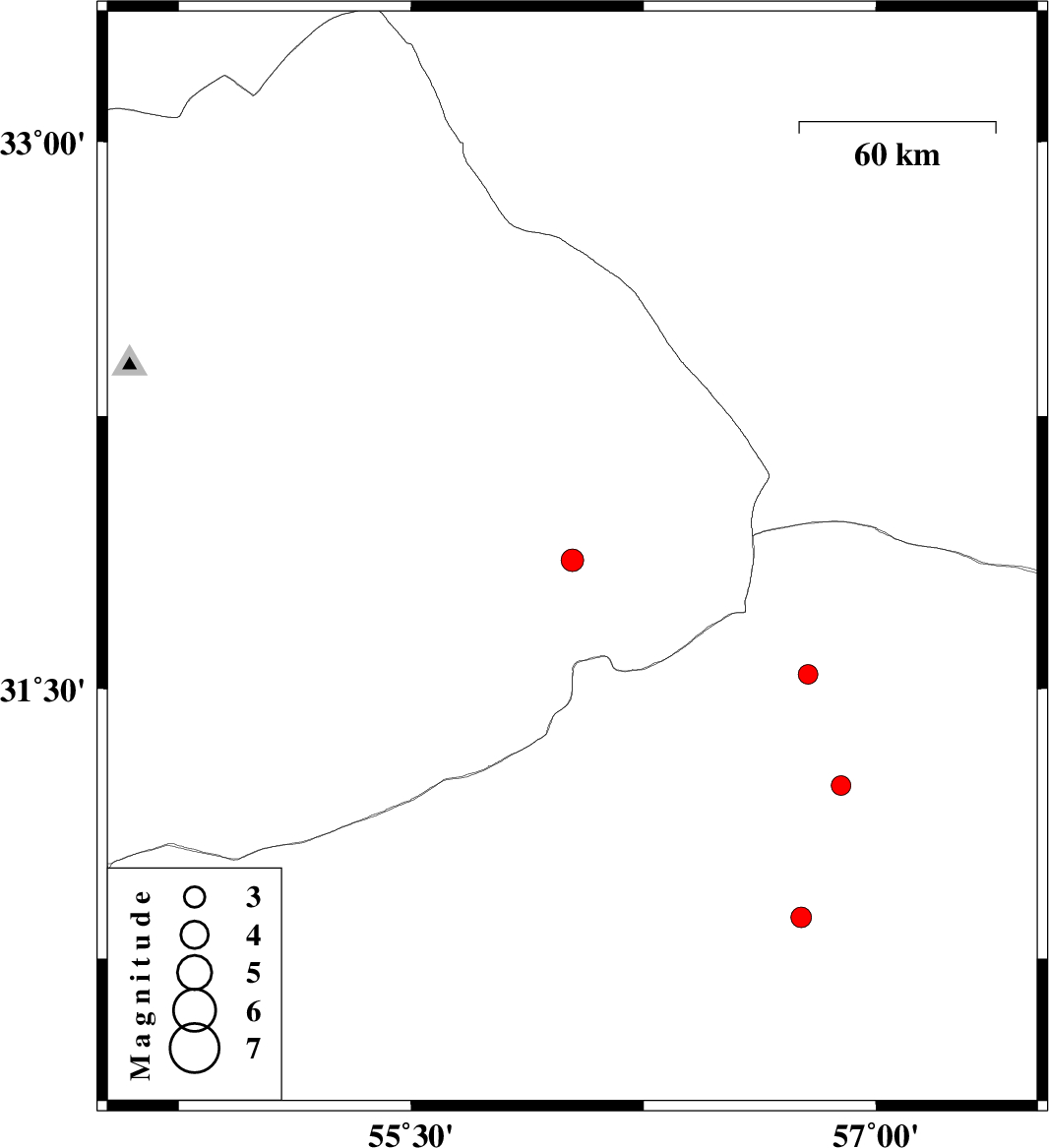 | 2016/08/06 | 04:12:01.5 | 08:42:01.5 | 30.865 | 56.758 | 14 | ML3 | Kerman Province, 19 km -East of Zarand | ||