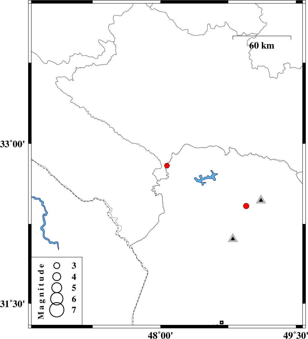 | 2016/08/08 | 17:49:01.7 | 22:19:01.7 | 32.418 | 48.949 | 18 | ML2.8 | Khoozestan Province, 15 km -West of Lali |