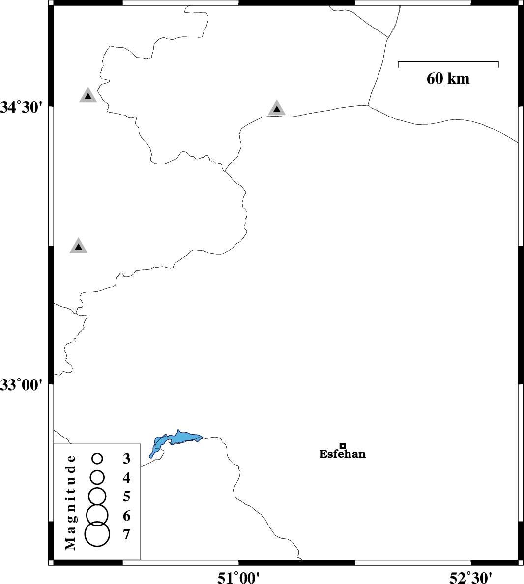 | 2016/08/24 | 14:24:06.4 | 18:54:06.4 | 33.537 | 51.304 | 14 | ML2.7 | Esfahan Province, 51 km South-West of Kashan |