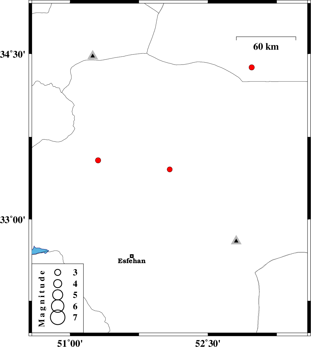 | 2016/08/24 | 14:24:06.4 | 18:54:06.4 | 33.537 | 51.304 | 14 | ML2.7 | Esfahan Province, 51 km South-West of Kashan | ||