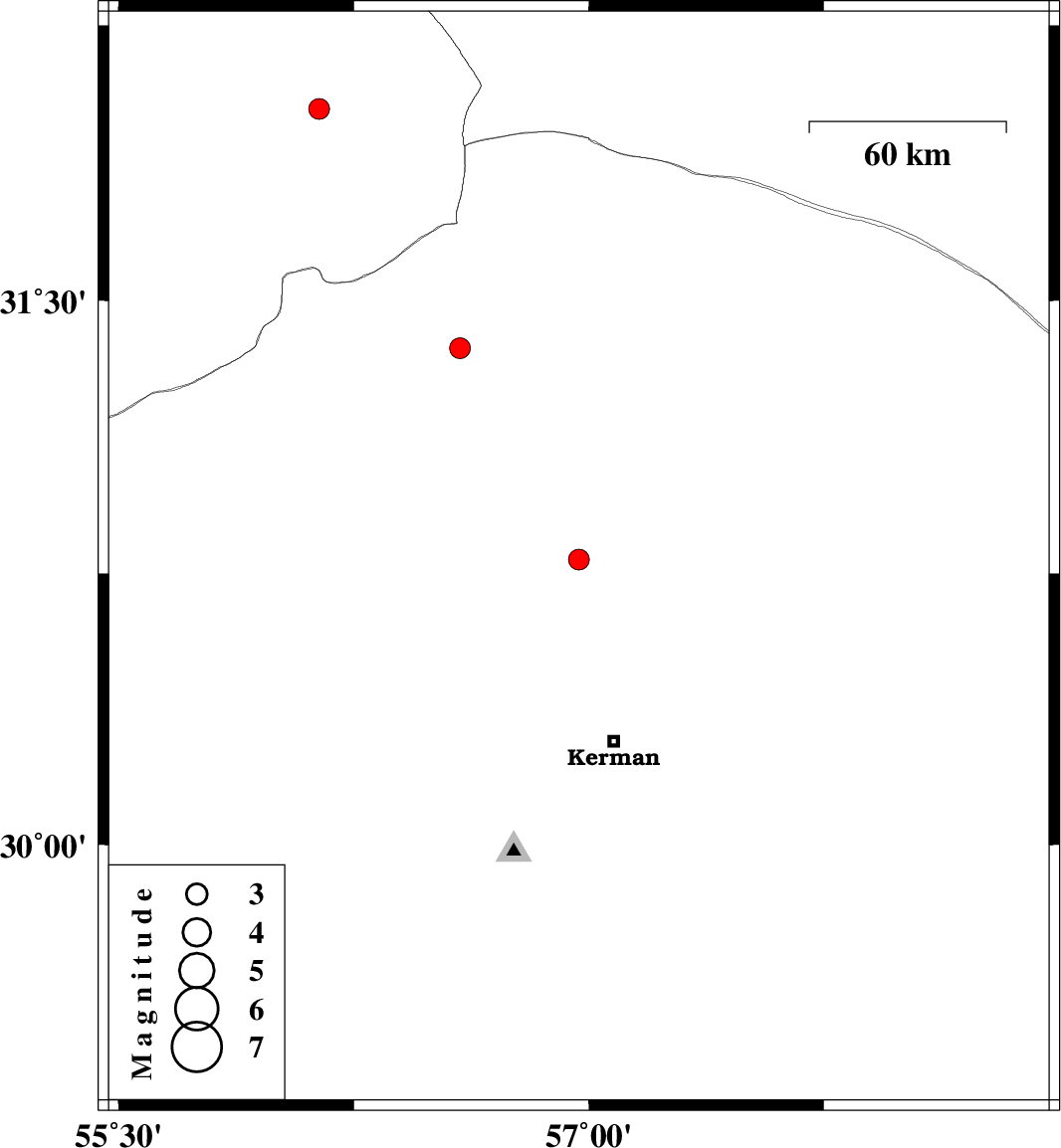 | 2016/08/28 | 04:23:09.9 | 08:53:09.9 | 31.369 | 56.589 | 30 | ML3 | Kerman Province, 24 km North-West of Ravar | ||