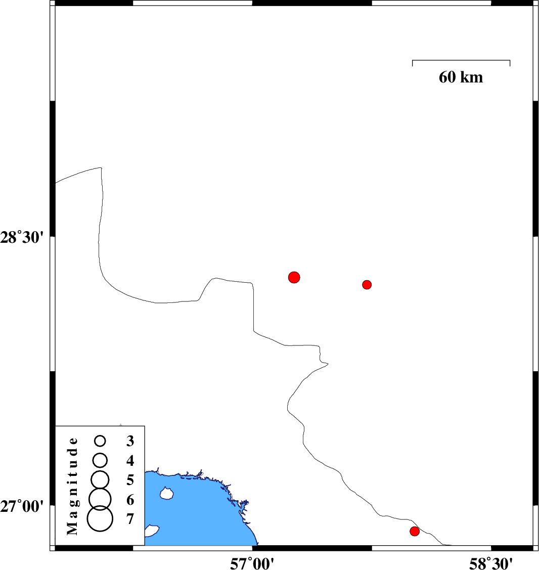 | 2016/09/15 | 10:36:05.0 | 15:06:05.0 | 28.273 | 57.261 | 14 | ML3.2 | Kerman Province, 56 km North-West of Kahnuj | ||