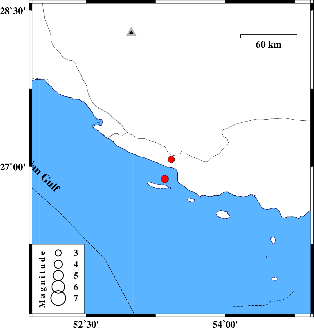 | 2016/09/17 | 15:31:15.6 | 20:01:15.6 | 26.88 | 53.348 | 15 | ML3.7 | Persian Gulf, 53 km South-East of Lamerd | ||