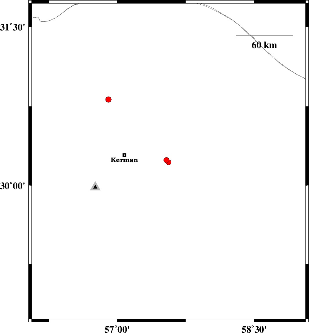 | 2016/09/18 | 11:14:26.1 | 15:44:26.1 | 30.219 | 57.563 | 16 | ML2.6 | Kerman Province, 47 km -East of Kerman | ||