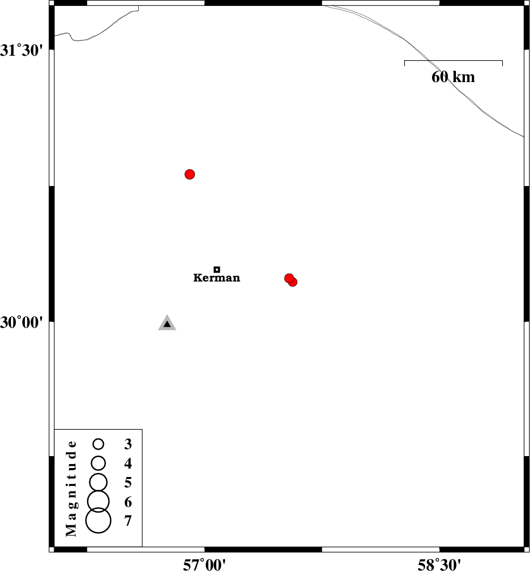 | 2016/09/18 | 11:25:57.6 | 15:55:57.6 | 30.24 | 57.54 | 14 | ML2.7 | Kerman Province, 45 km -East of Kerman | ||