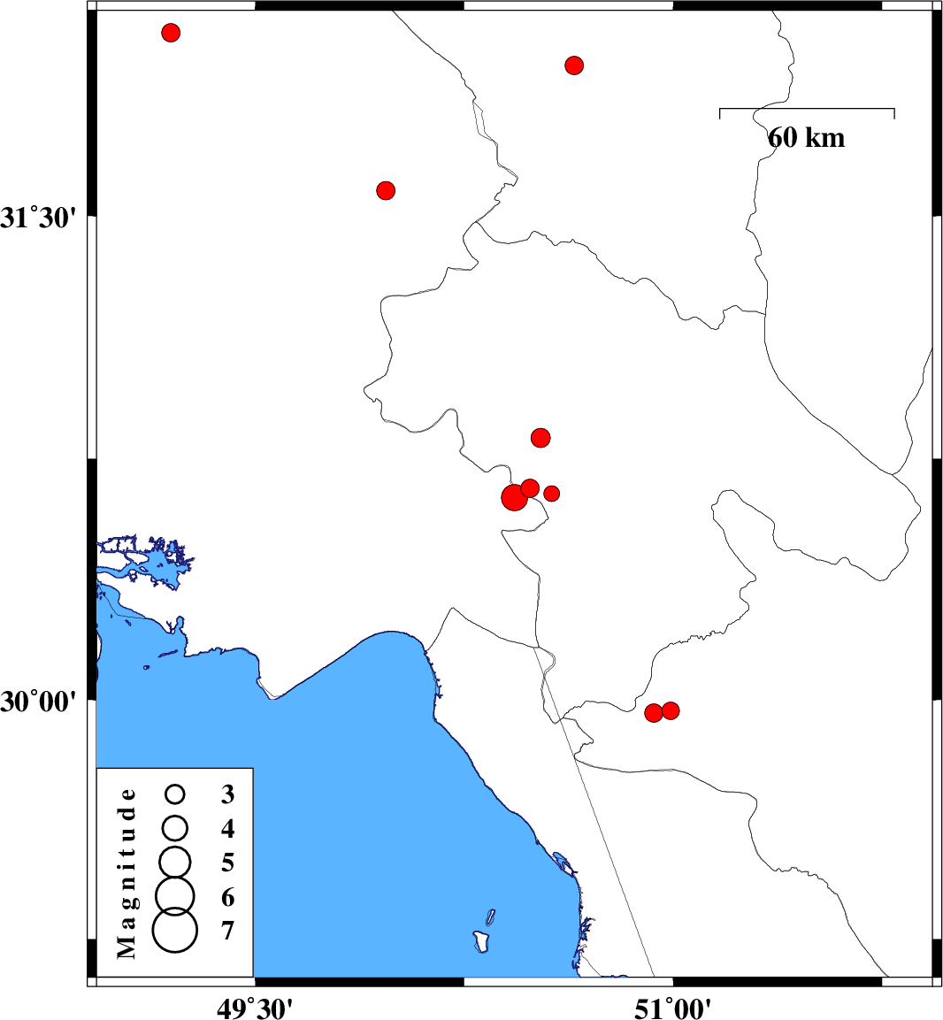 2016/09/21 15:25:10.8 18:55:10.8 29.96650.9916 ML2.8 Fars Province, 47 km South-East of Dogonbadan