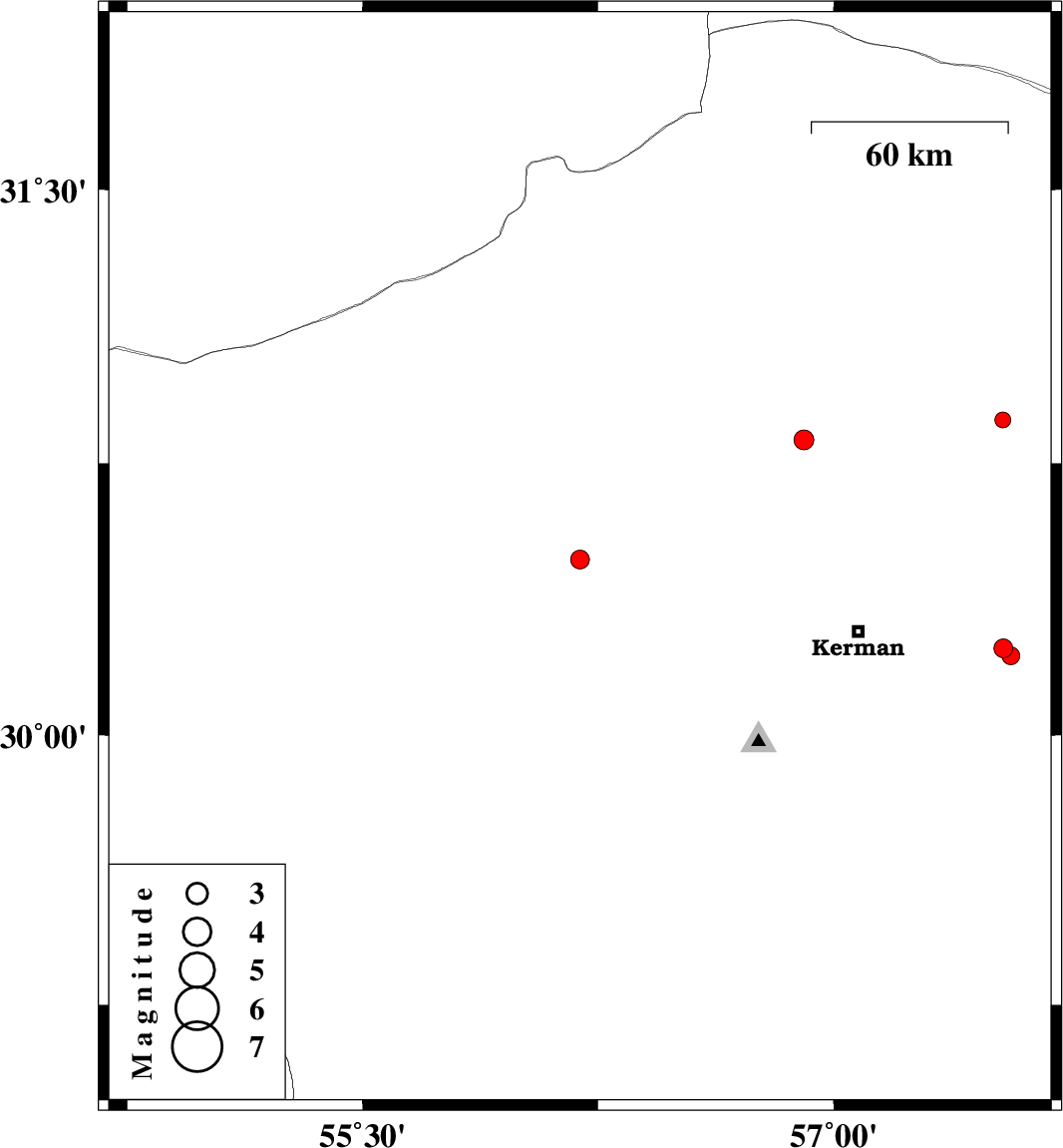 | 2016/09/22 | 10:50:19.3 | 14:20:19.3 | 30.485 | 56.192 | 15 | ML2.7 | Kerman Province, 21 km -East of Rafsanjan | ||