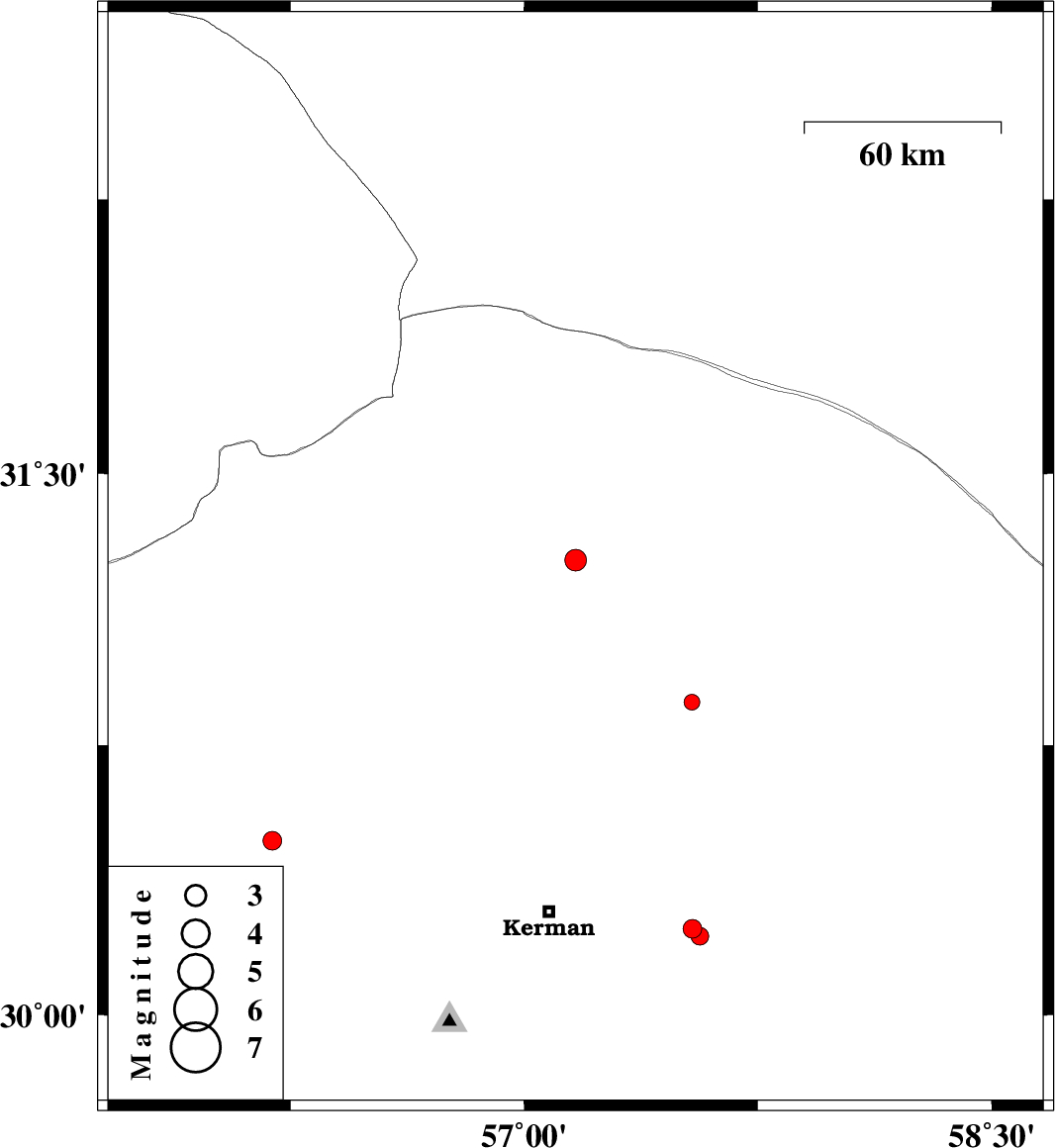 | 2016/09/22 | 10:50:19.3 | 14:20:19.3 | 30.485 | 56.192 | 15 | ML2.7 | Kerman Province, 21 km -East of Rafsanjan | ||
