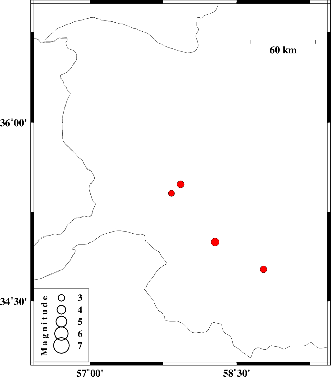 | 2016/09/07 | 22:05:41.8 | 02:35:41.8 | 34.999 | 58.279 | 17 | ML3.6 | Khorasan(center) Province, 31 km South-West of Kashmar |