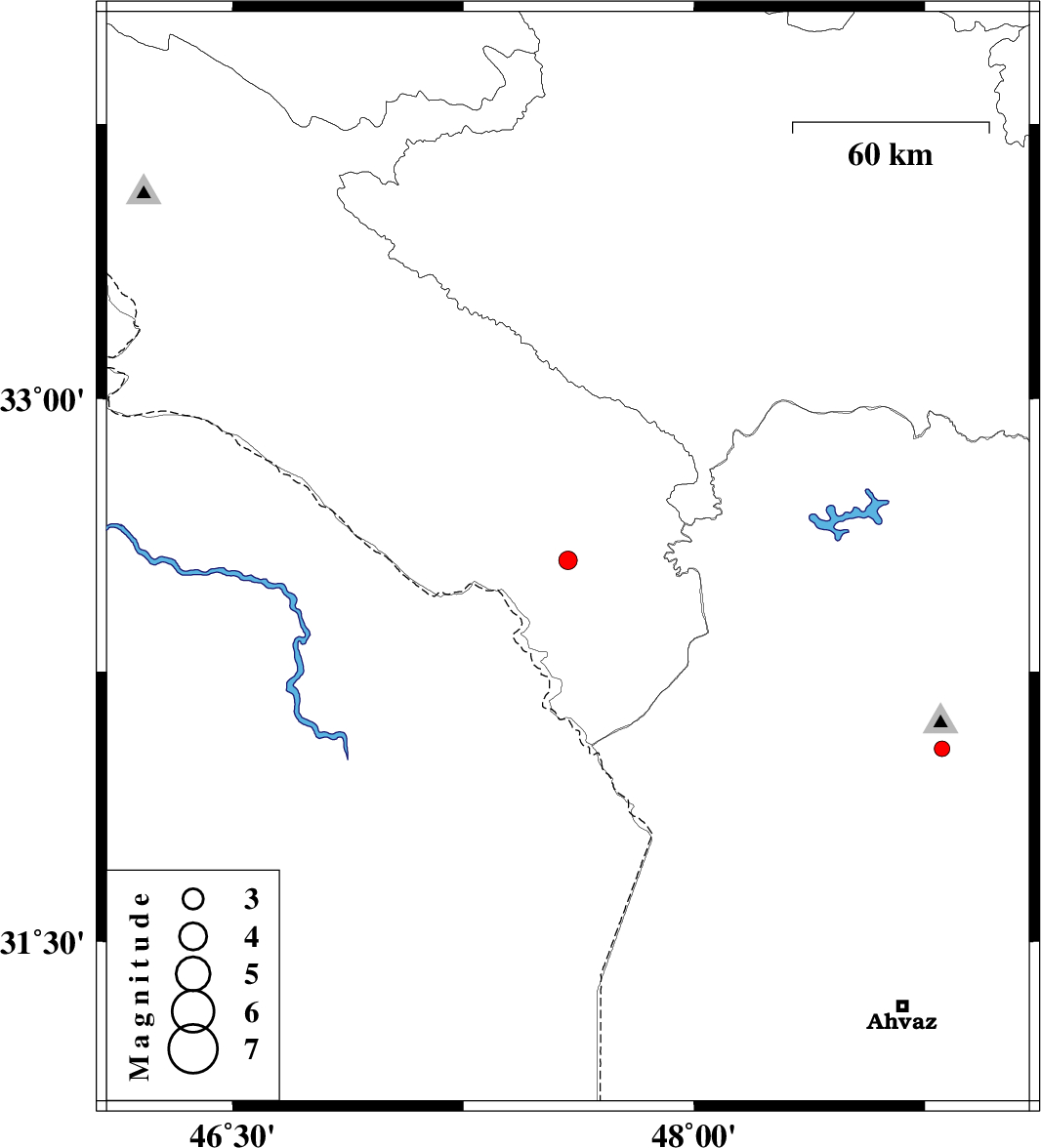| 2016/10/08 | 00:24:16.2 | 03:54:16.2 | 32.036 | 48.807 | 15 | ML2.3 | Khoozestan Province, 4 km of Shushtar |
