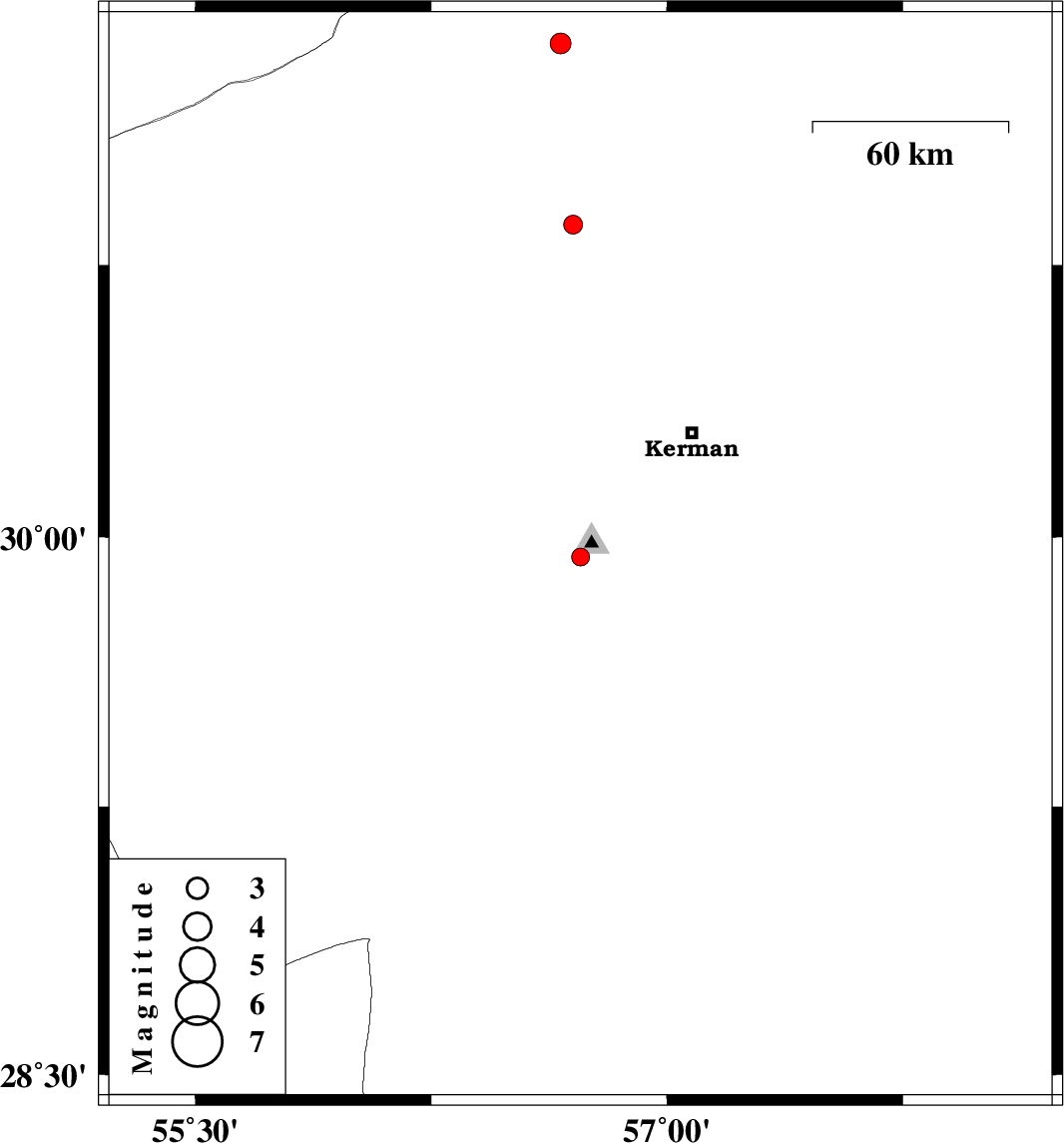 | 2016/10/09 | 14:17:55.0 | 17:47:55.0 | 29.944 | 56.725 | 14 | ML2.5 | Kerman Province, 15 km -East of Bardsir | ||