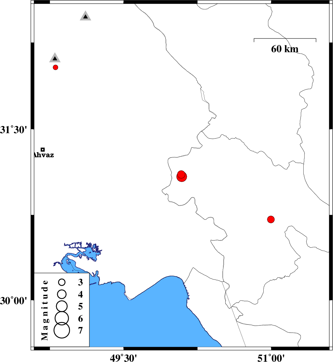 | 2016/10/08 | 00:24:16.2 | 03:54:16.2 | 32.036 | 48.807 | 15 | ML2.3 | Khoozestan Province, 4 km of Shushtar |