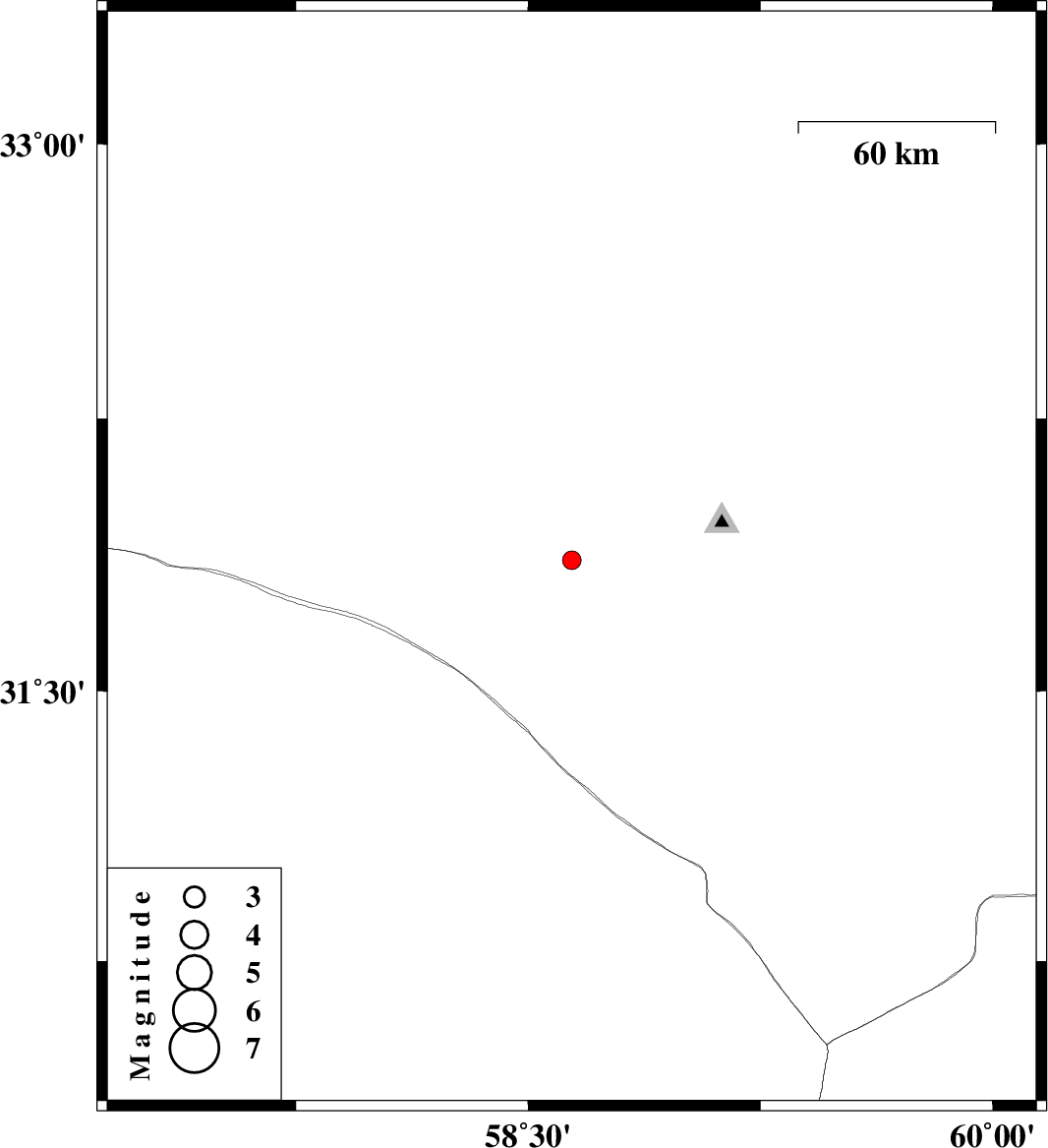 | 2016/10/14 | 05:31:34.7 | 09:01:34.7 | 31.861 | 58.641 | 14 | ML2.7 | Khorasan(south) Province, 128 km South-West of Birjand | ||