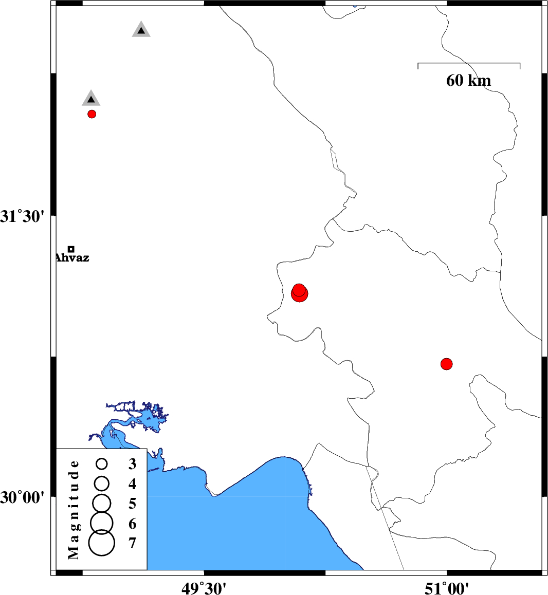 | 2016/10/08 | 00:24:16.2 | 03:54:16.2 | 32.036 | 48.807 | 15 | ML2.3 | Khoozestan Province, 4 km of Shushtar |