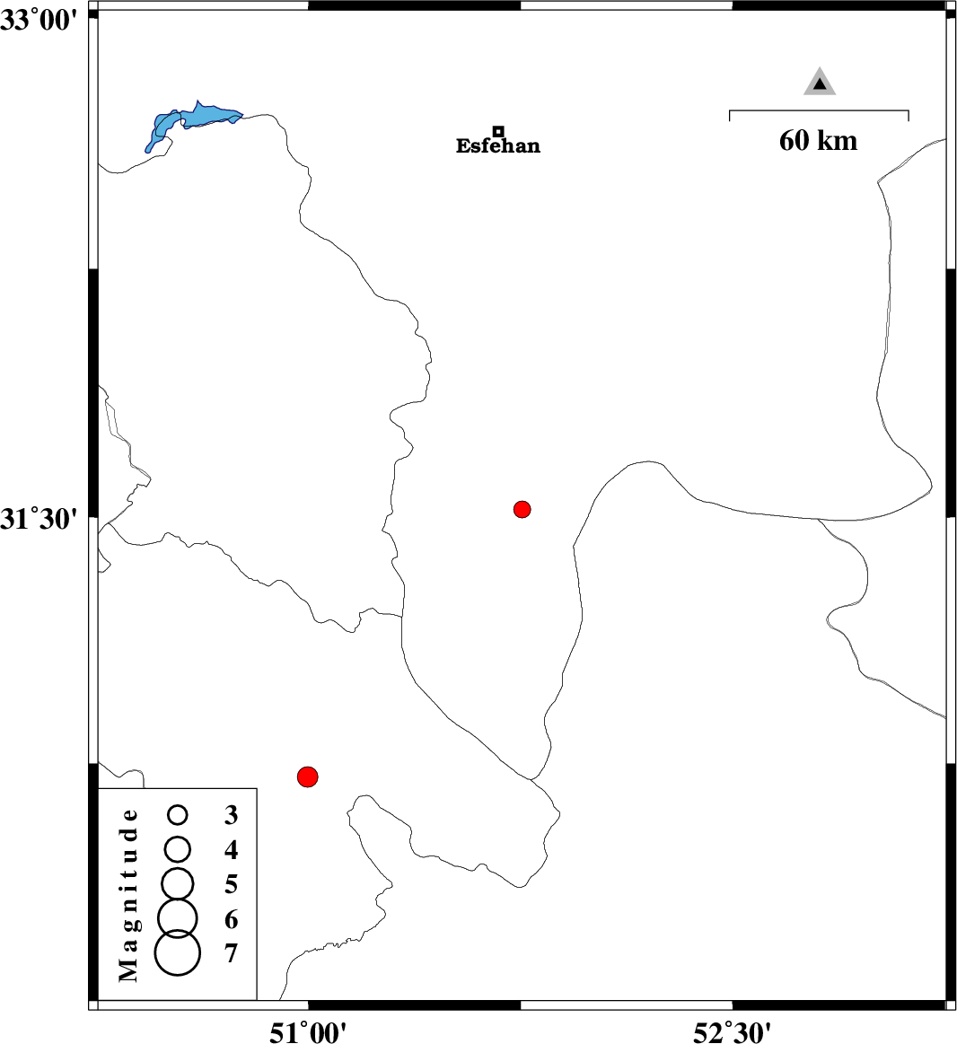 | 2016/10/13 | 13:22:45.2 | 16:52:45.2 | 31.524 | 51.755 | 14 | ML2.7 | Esfahan Province, 21 km North-East of Semirom | ||