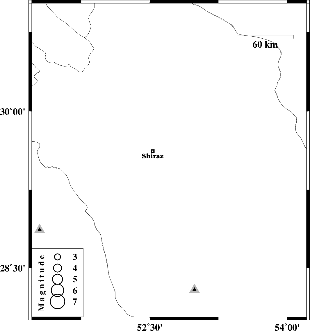 | 2016/10/13 | 05:37:57.6 | 09:07:57.6 | 29.523 | 52.711 | 14 | ML2.8 | Fars Province, 20 km -East of Shiraz |