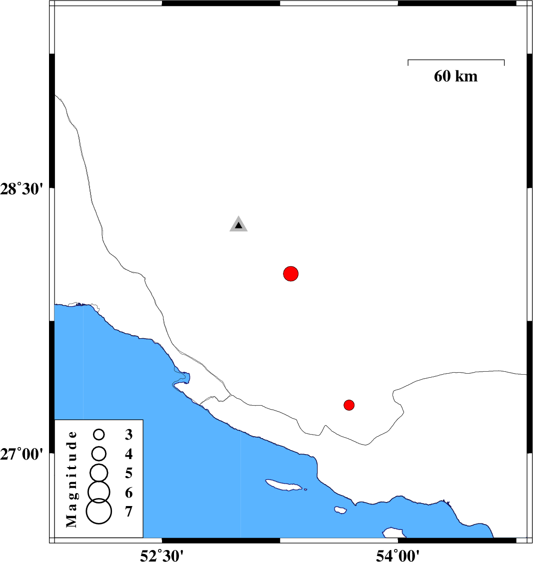 | 2016/10/19 | 18:00:10.8 | 21:30:10.8 | 27.273 | 53.688 | 15 | ML3 | Fars Province, 52 km -East of Lamerd |