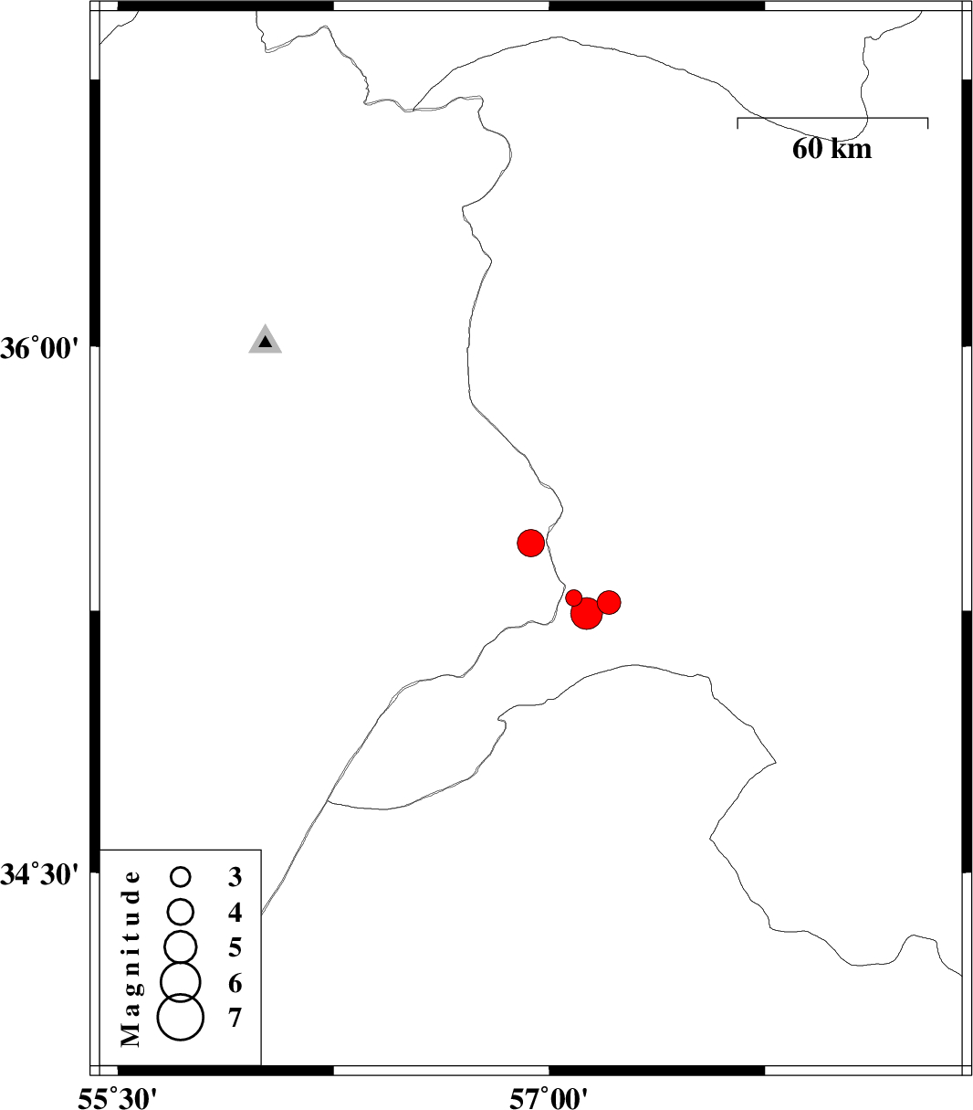 | 2016/10/25 | 11:58:14.7 | 15:28:14.7 | 35.442 | 56.936 | 15 | ML4.3 | Semnan Province, 94 km North-West of Bardeskan | ||