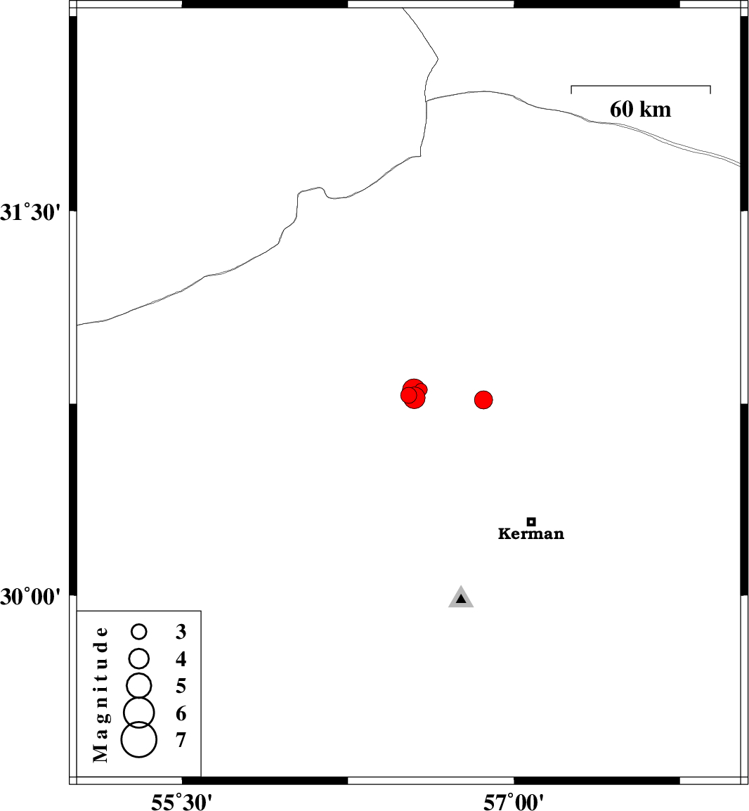 | 2016/10/31 | 13:44:00.8 | 17:14:00.8 | 30.774 | 56.55 | 16 | ML4.4 | Kerman Province, 4 km of Zarand | ||