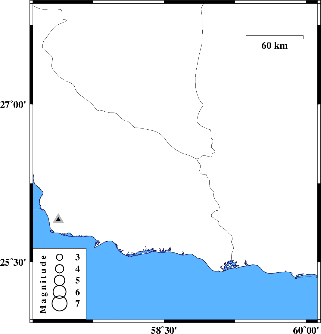 | 2016/11/02 | 18:32:51.1 | 22:02:51.1 | 26.448 | 58.618 | 15 | ML3 | Hormozgan Province, 124 km North-East of Jask |