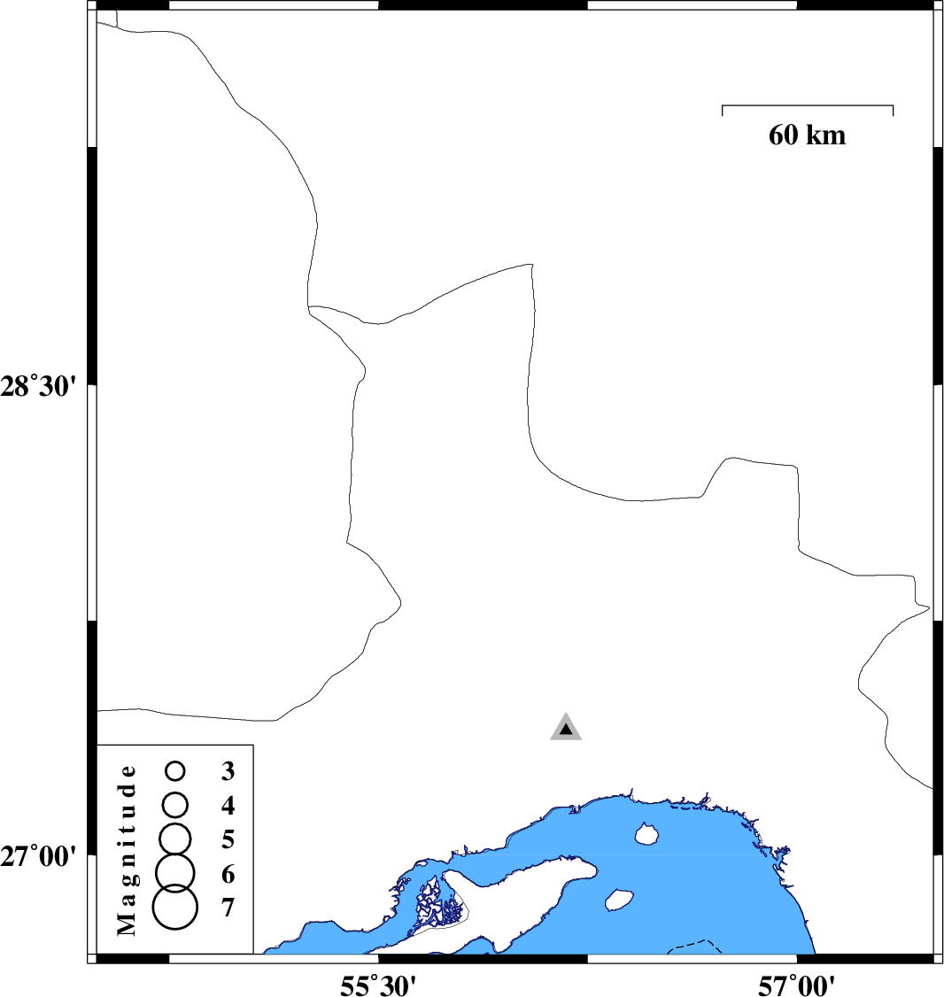| 2016/11/06 | 09:08:14.2 | 12:38:14.2 | 28.181 | 55.989 | 15 | ML2.9 | Hormozgan Province, 17 km South of Hajiabad |