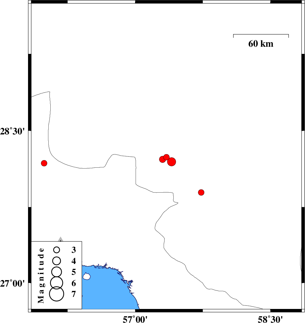 2016/11/05 17:28:21.7 20:58:21.7 27.89457.73216 ML3 Kerman Province, 7 km of Kahnuj