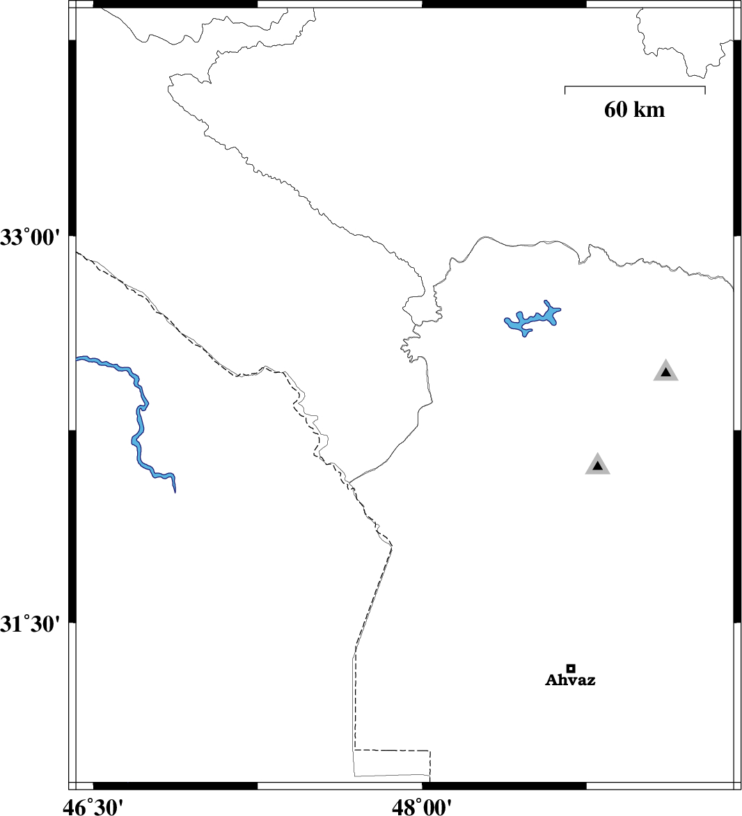 | 2016/11/11 | 07:08:51.9 | 10:38:51.9 | 32.374 | 47.921 | 14 | ML2.7 | Ilam Province, 45 km -West of Dezful | ||